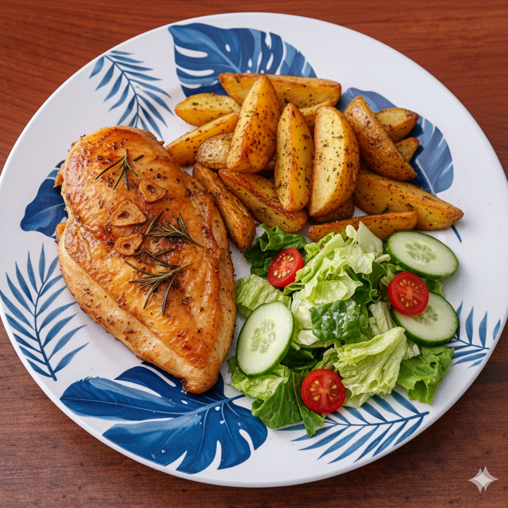 Pollastre amb patates al caliu i amanida – 10€